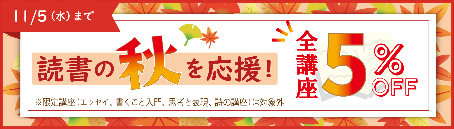 講座後に設定されたテーマにそって詩やエッセイを作る「書くワーク」付の講座もお選び頂けます。