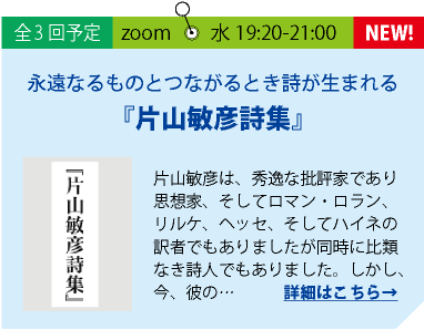 この期から新しく参加されたいという方でもご理解いただけるように講座を進めて参ります。質疑応答の時間も十分にある講座です。ぜひ、ご参加ください。(講師:若松英輔)